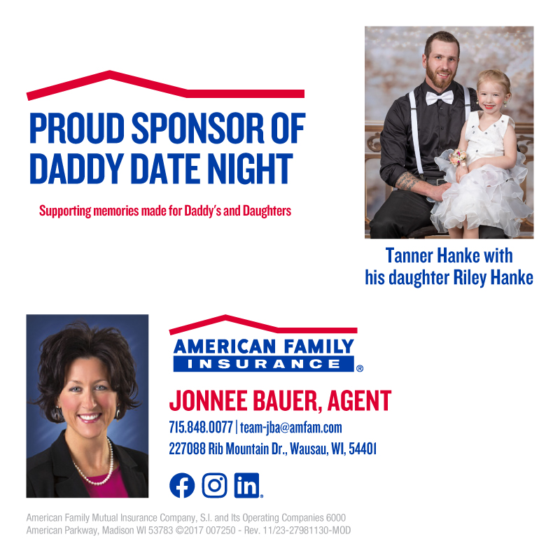 Come enjoy snacks, desserts and dancing from 6:00 to 9:00 pm, Saturday, April 18 at the Central Wisconsin Convention & Expo Center, 10101 Market St, Rothschild in the Grand Ballroom. Daughters and Dads of all ages are welcome. Dinner is not included. Make memories dancing to your favorite song, cheesing it up in the photo booth and enjoying dessert and refreshments. Music provided by Dance with Dignity. Professional pictures will be done by Portraits by Tiffany for an additional fee.